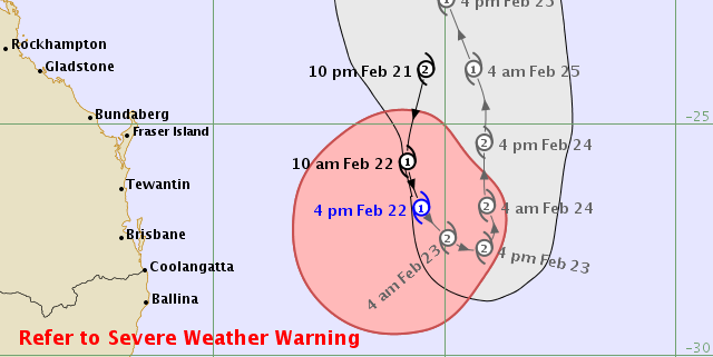 The wind from cyclone Oma is quite strong. We’ve had gusts of over 70kmh today. Seas are big and will be for a while. We are keeping an eye on all the boats in the marina and on our moorings. Oma is quite fickle…just look at the BOM track!!!!