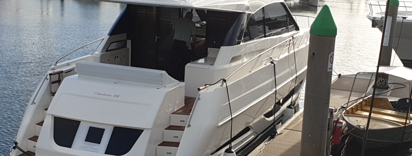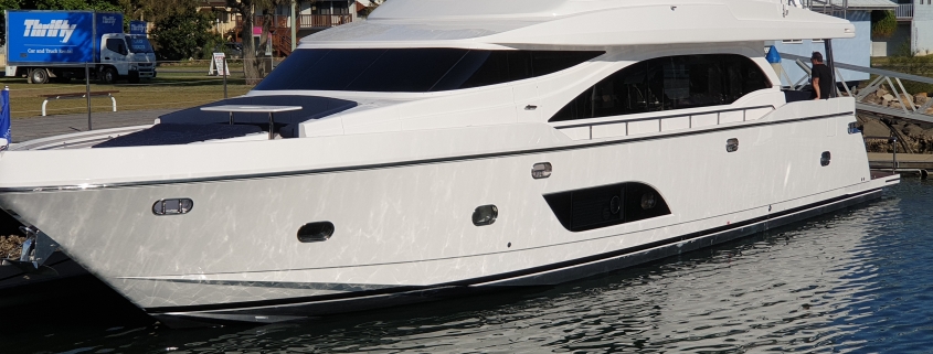 A brand new Princess Yacht bound for the Sydney Boat Show. Great day to drop in to Yamba for an overnight stay.
