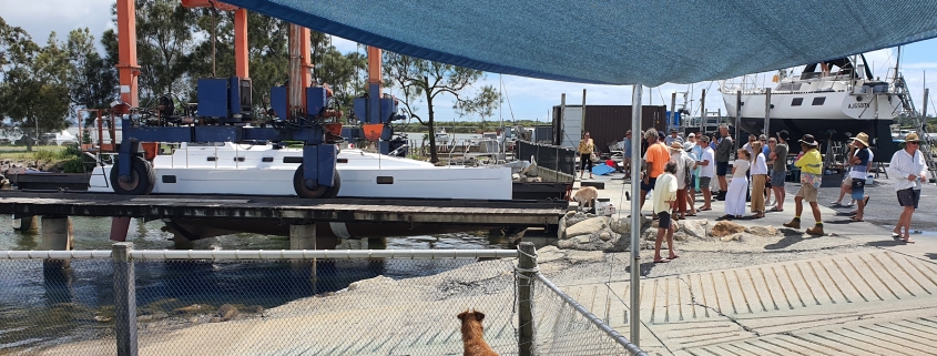Great to see “Outlaw” go into the water for the first time today. A local product made on the banks of the Clarence River. May she have fair winds and smooth seas.