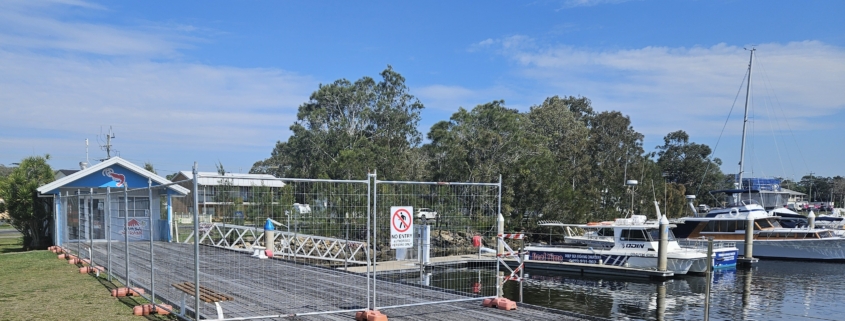 We have begun major works on the timber wharf at the eastern end of the marina. This means that for an extended period the wharf will be out of bounds. We have installed temporary fencing to keep the site safe. In the short-term access to the marina will be via the ramp in front of the Marina Cafe. Sorry for any problems this may cause. Access is still available for trolleys etc via the Cafe ramp. The safety fence will be relocated as the works progress. All the wharf timbers are being replaced with new treated hardwood timber planks.