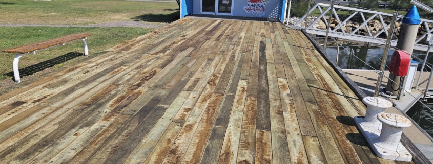 The new timber wharf on the eastern end of the marina is really taking shape now. A few more weeks and the job will be complete. Local treated hardwood secured by thousands of stainless screws. Steve Abbott is doing a great job!