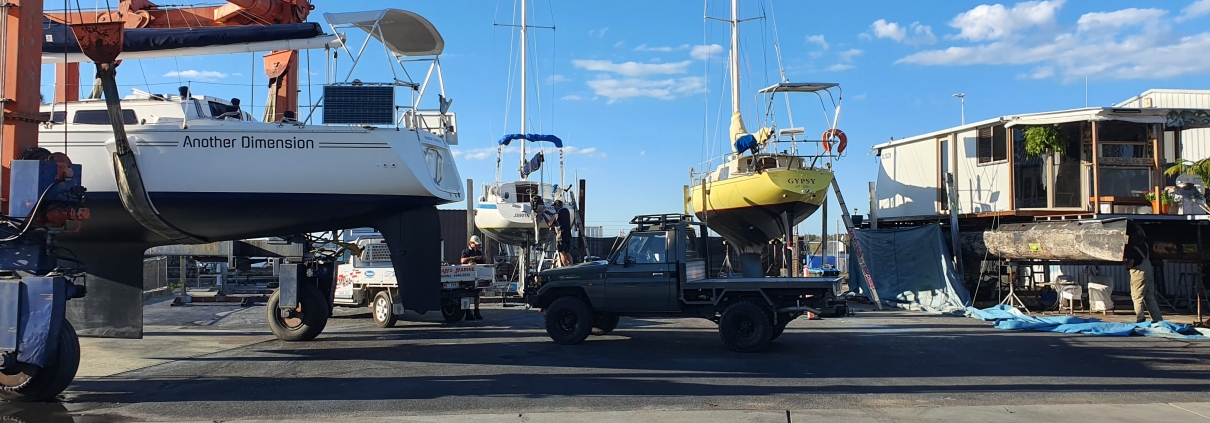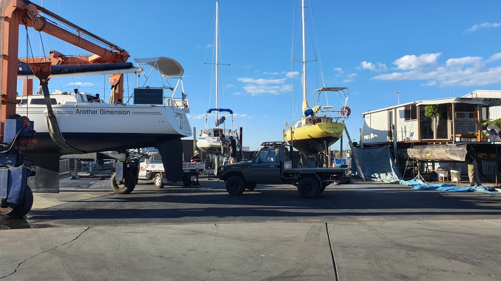 The hardstand is busy. Floods have been and gone (for now). If you need to work on your boat please book in because hardstand space is at a premium.