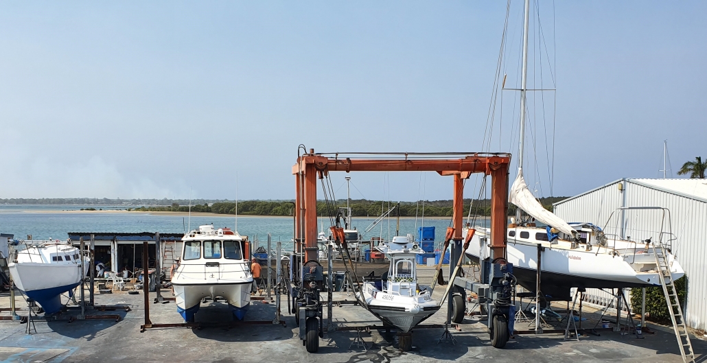 Changing of the guard on the hardstand. The big Riv’s have headed home and now the small boats are in the yard. And if you look on the horizon….blue sky…….and still some bushfire smoke. More than 110,000 hectares of bush and grass has been on fire in the past few weeks and fires are still burning as the wind keeps changing direction.