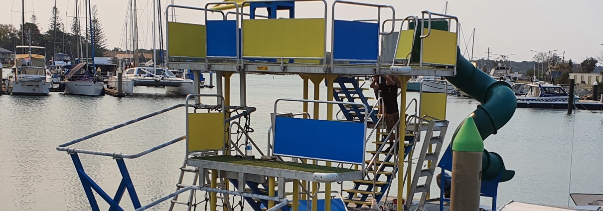 Looked like a jigsaw puzzle when it arrived…..but it’s taking shape now and hopefully this new water-based fun slide will be ready for use over the holidays. We’re told it will operate in Yamba Bay…so keep an eye out……kids having fun is always good to see!!!!!