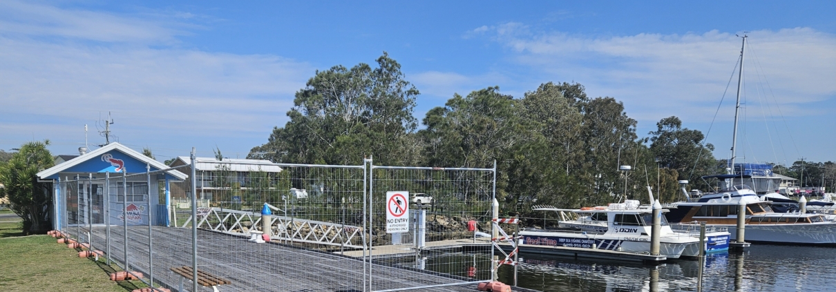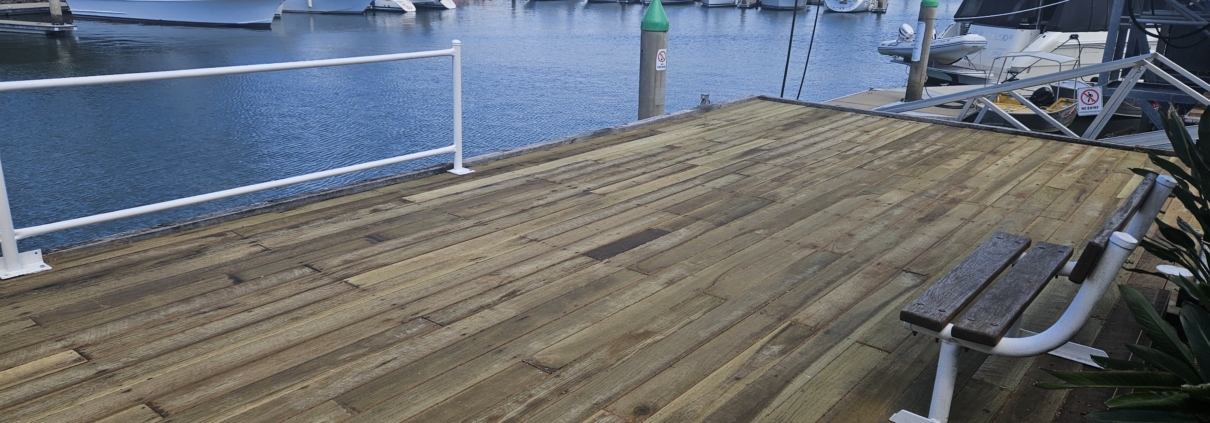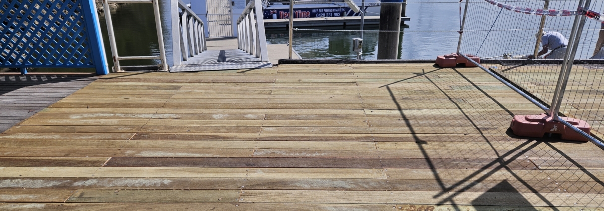 We have begun major works on the timber wharf at the eastern end of the marina. This means that for an extended period the wharf will be out of bounds. We have installed temporary fencing to keep the site safe. In the short-term access to the marina will be via the ramp in front of the Marina Cafe. Sorry for any problems this may cause. Access is still available for trolleys etc via the Cafe ramp. The safety fence will be relocated as the works progress. All the wharf timbers are being replaced with new treated hardwood timber planks.