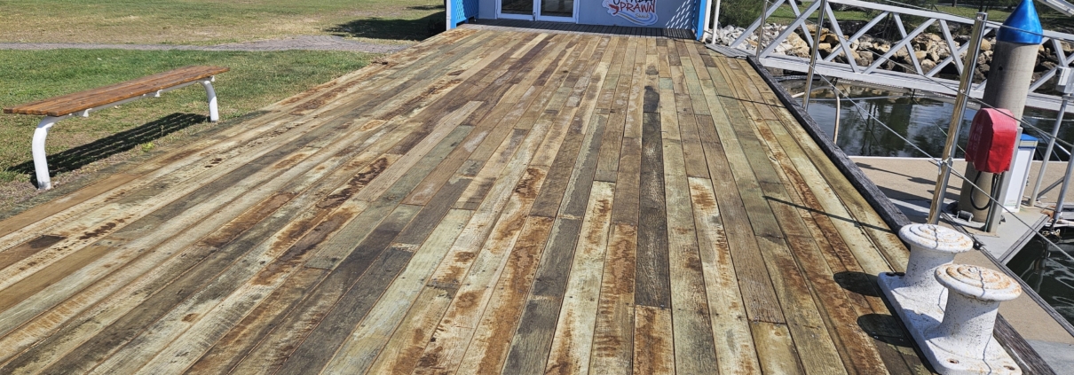 The first stage of the replacement of the main deck is now compete and access to the floating marina via the main ramp is now open. Remember however this is still a building site and will be for some weeks to come so everyone needs to be careful. The deck structure is treated local hardwood and each plank is individually laid.