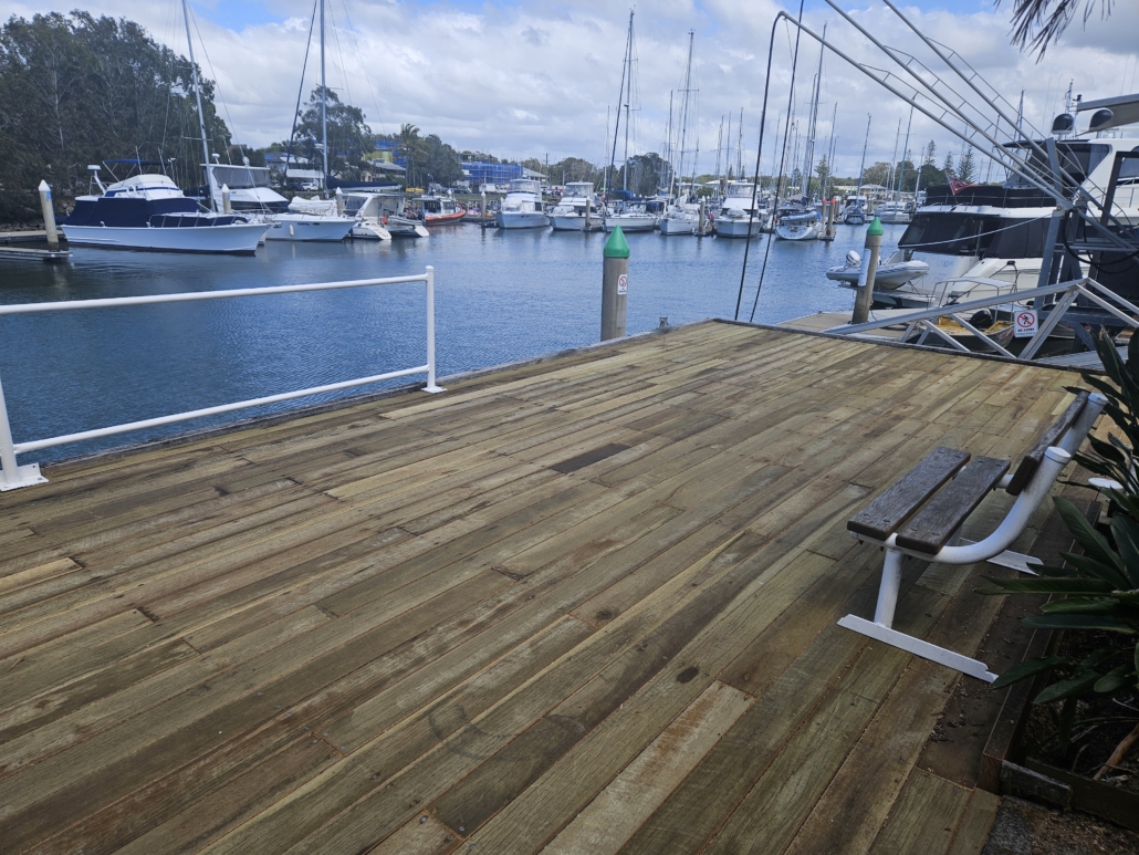 Work on the second section of the timber decking now complete. Almost 2000 linear metres of treated local hardwood and over 5000 stainless steel screws. And the whole job completed by one man, Steve Abbott. Great work Steve. Thank you.