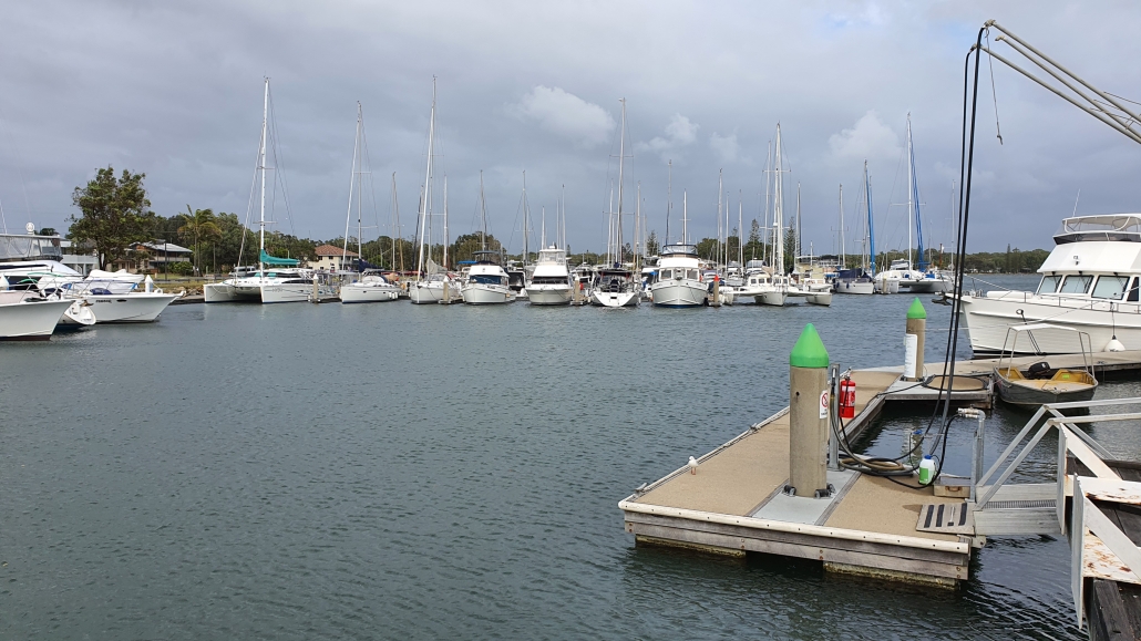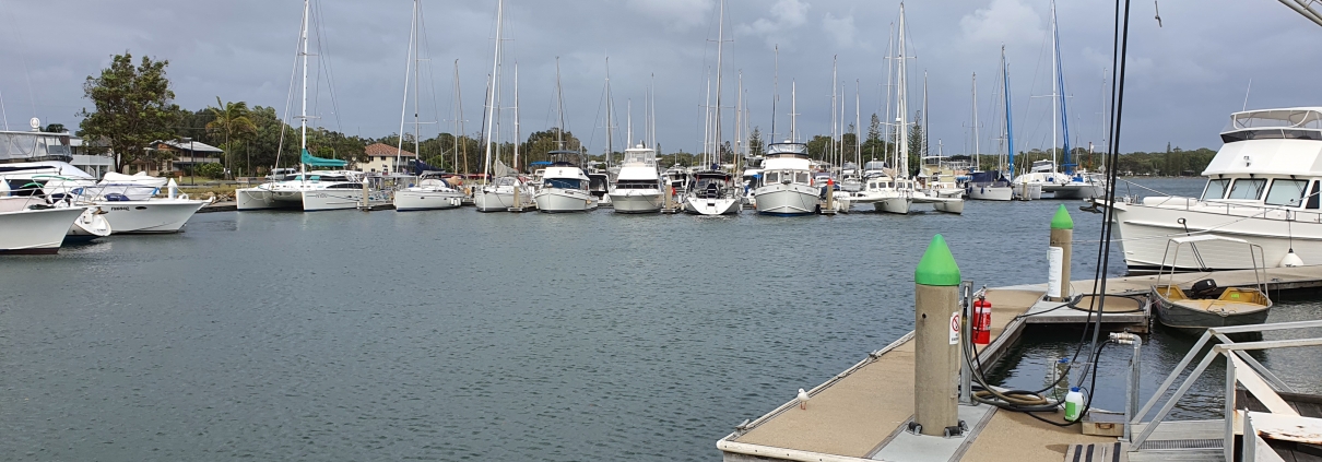 Hard to believe but when this picture was taken it was blowing at over 50 kilometres an hour in Yamba. All the boats are snug in their berths and protected from the very strong south-easter. The wind will blow harder today and tomorrow so its a good day to be tied-up.