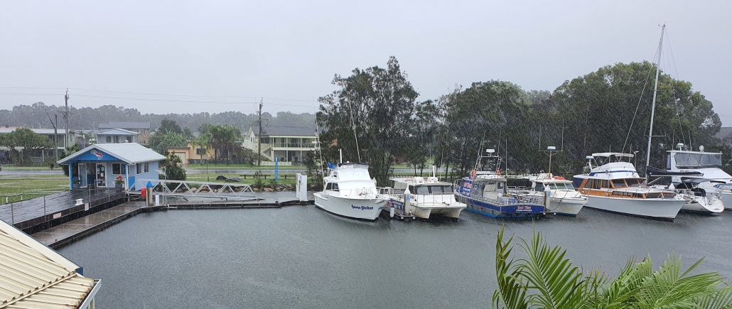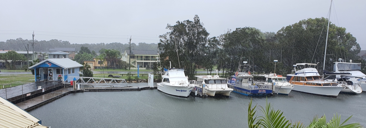 Tide measuring on the middle wall of the Clarence River at Yamba today showed a high tide of 2.02 metres. The predicted tide was 1.8 metres. That’s a lot of extra water flowing about. Be careful. The next few days will not be great for boating!
