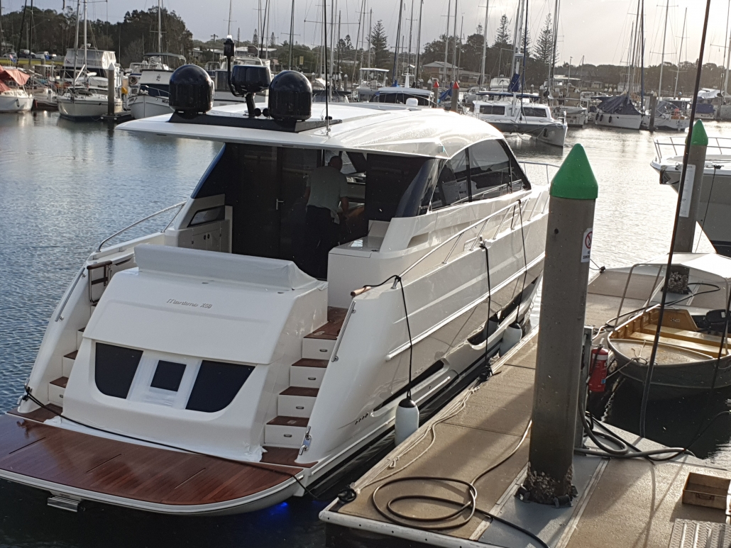 A couple of brand new boats from Maritimo on their way to Sydney for the boat show. A bit hectic out at sea in this weather so they came in for a night….for a rest and hoping for a drop in the swell….
