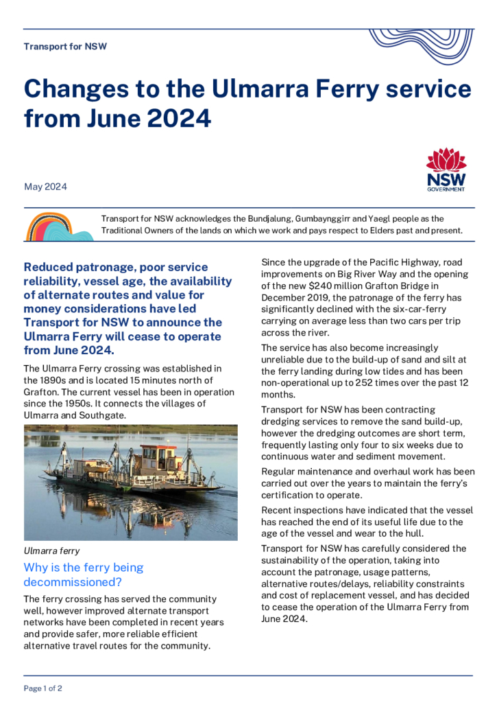 News Articles Ulmarra Ferry to cease operation May 15, 2024/by Peter Sutton https://test1.yambamarina.com.au/wp-content/uploads/2024/05/ulmarra-ferry-project-update-2024-05-pdf.jpg 1497 1058 Peter Sutton https://test1.yambamarina.com.au/wp-content/uploads/2025/01/logo5-365x60-light-300x49.png Peter Sutton2024-05-15 10:25:542024-05-15 10:25:54Ulmarra Ferry to cease operation