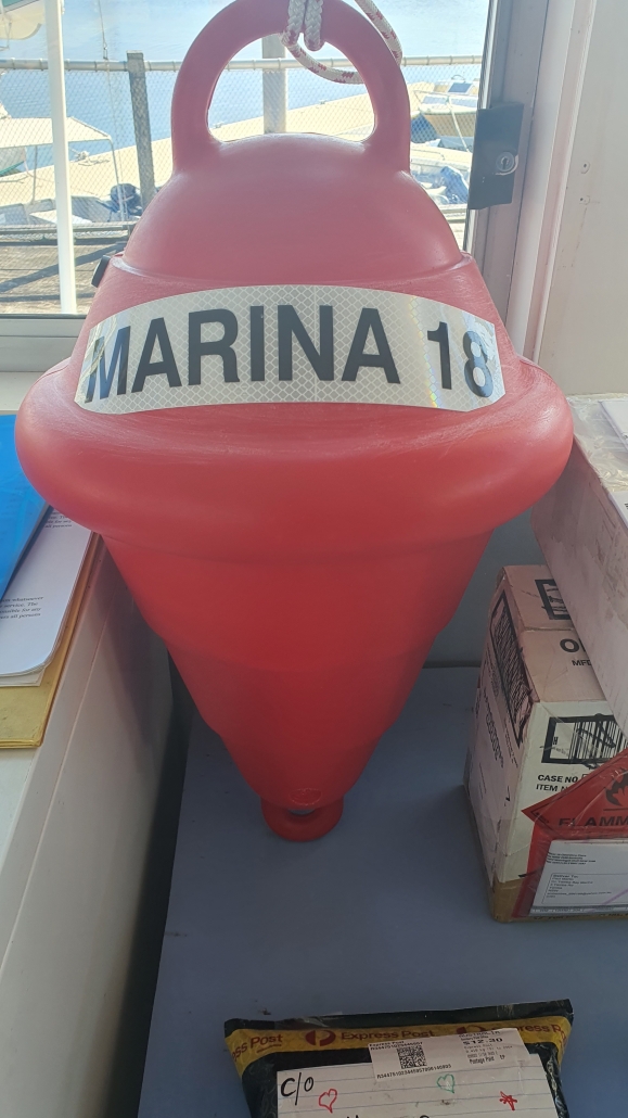 When you come to Yamba Marina all our mooring buoys are clearly identified. Staff will tell you which buoy has been allocated to your boat. You can see they are identified with the Marina buoy number and the commercial buoy licence number. It really is quite simple.